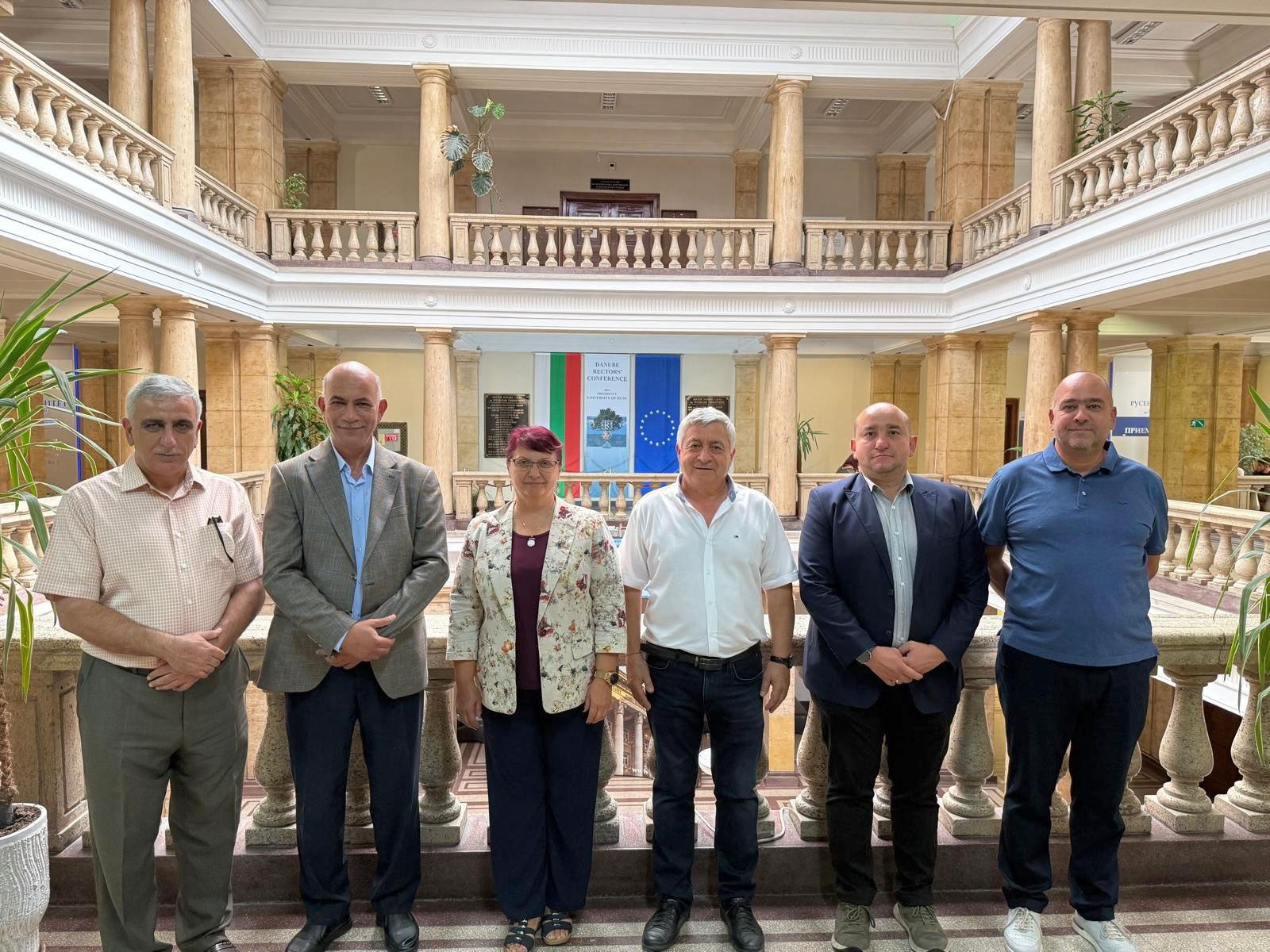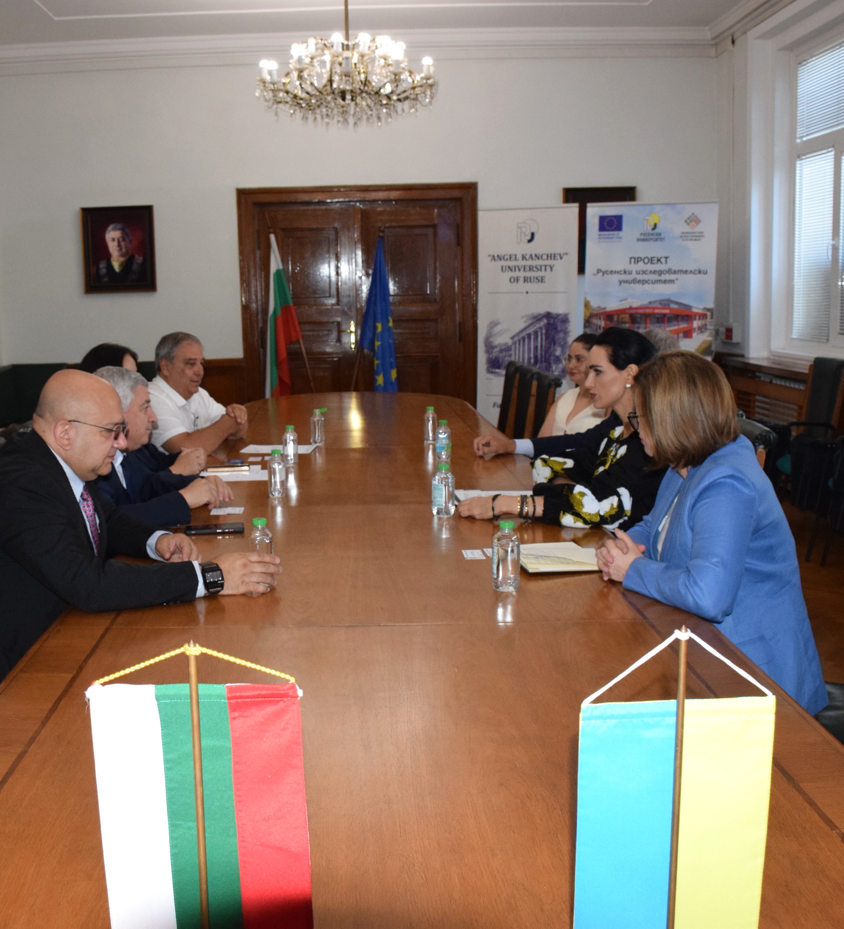 Today, October 15th, 2025, in the conference room of the Rectorate of the University of Ruse, the rector's management held a working meeting with representatives of the Faculty of Science and Engineering in Alexandria at the University of Valachia in Targoviste, The meeting was attended by the Rector of the University of Ruse, Assoc. Prof. Desislava Atanasova,  PhD, the Vice-Rectors Assoc. Prof. Galina Ivanova, PhD,  Prof. Daniel Bratanov, PhD  and Prof. Teodor Iliev, PhD.