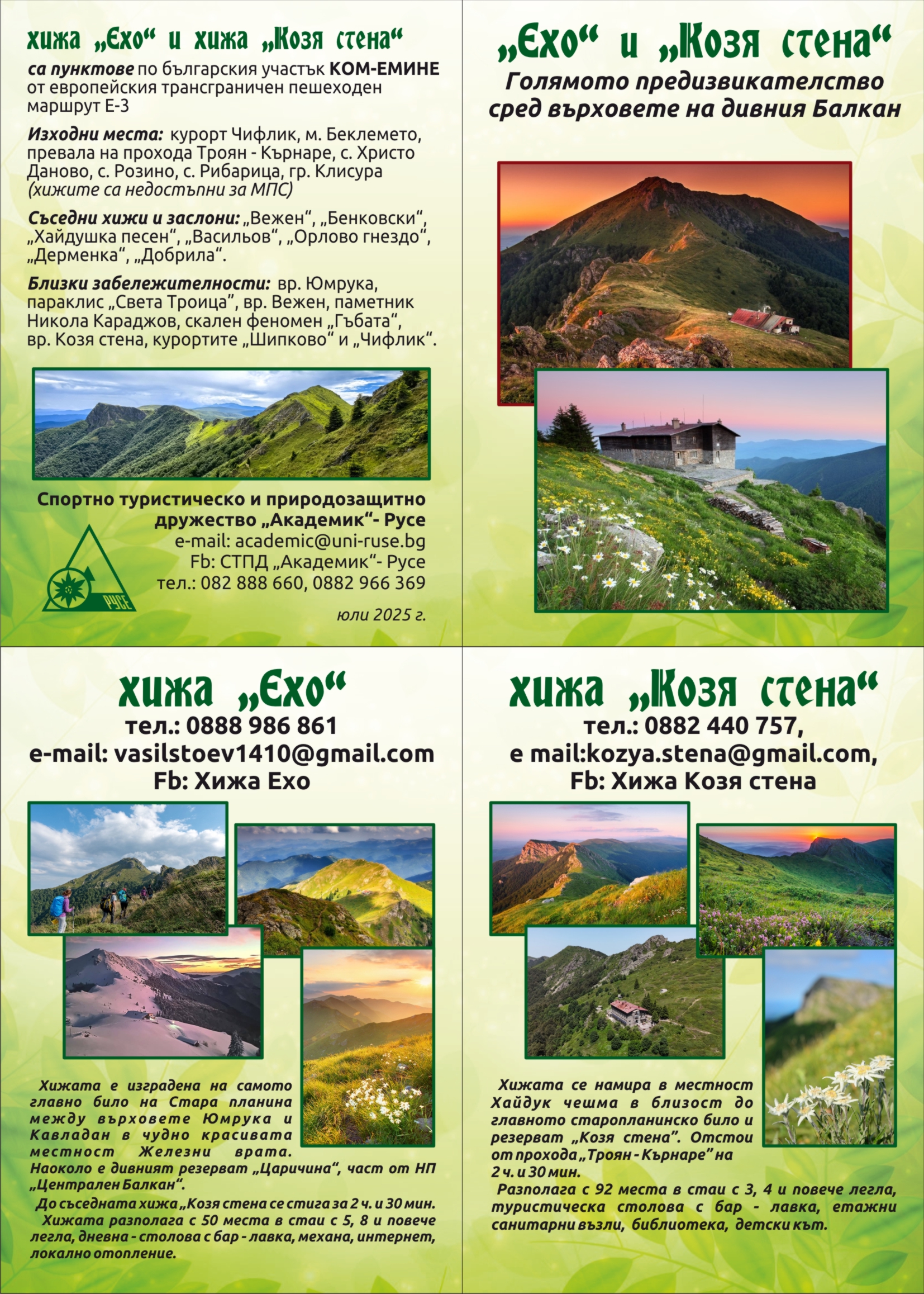 За това изграждането, подобряването и поддръжката на маркировката и обезопаси- телните съоръжения е неотменна грижа на СТПД „Академик“ вече в продължение на 37 години. Има се предвид и ангажираността на дружеството с построяването на съседната х. „Ехо“ и маркирането на пътеките в общия за двете хижи район.